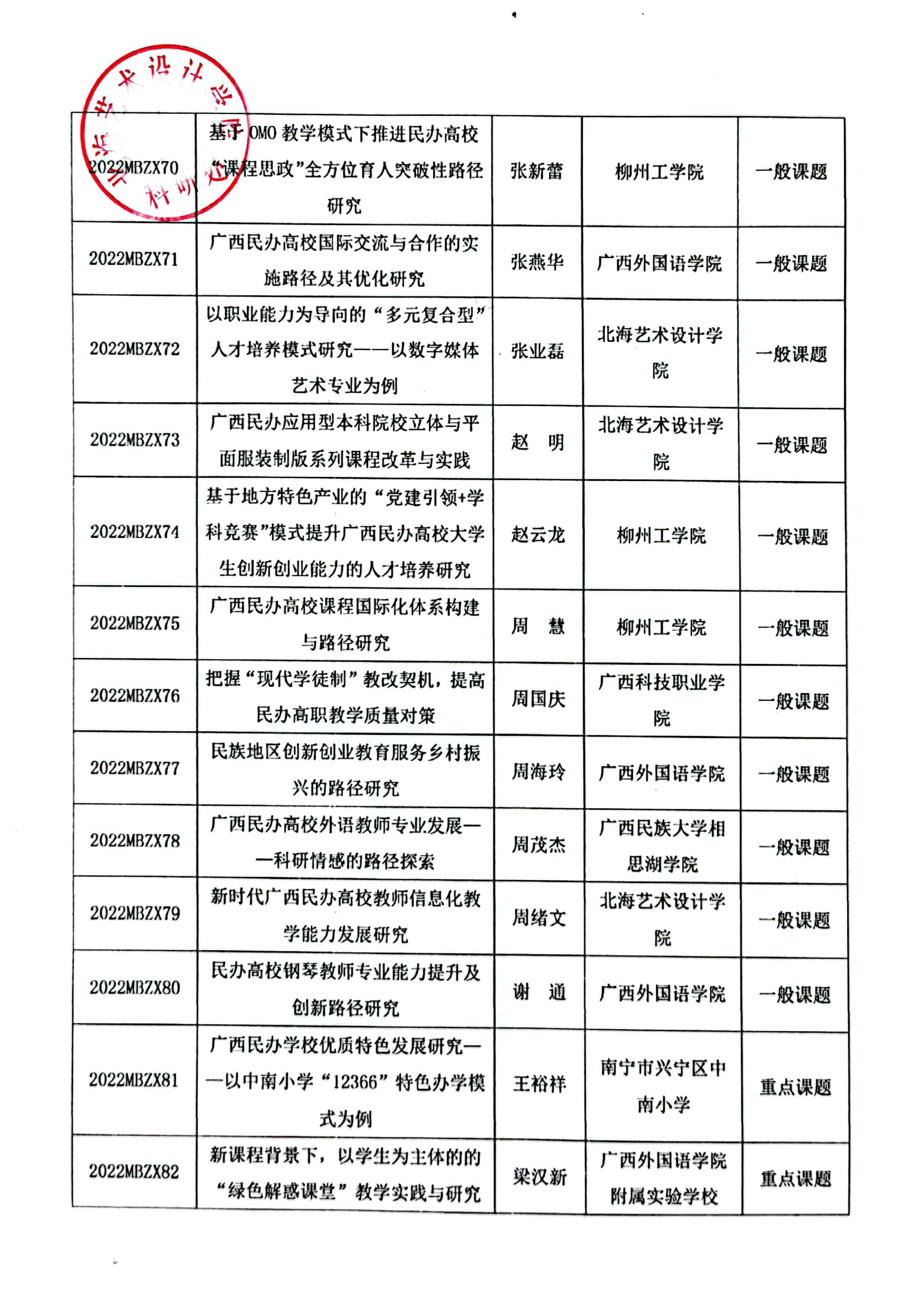 关于公布2022年广西民办教育科学规划课题立项名单通知文件
