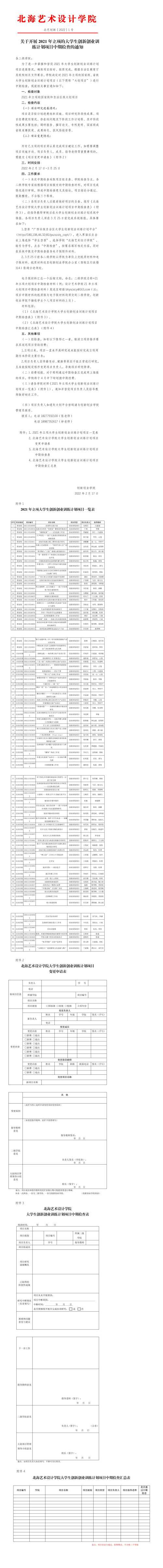 北艺创新〔2022〕1号 关于开展2021年“大创项目”中期检查的通知