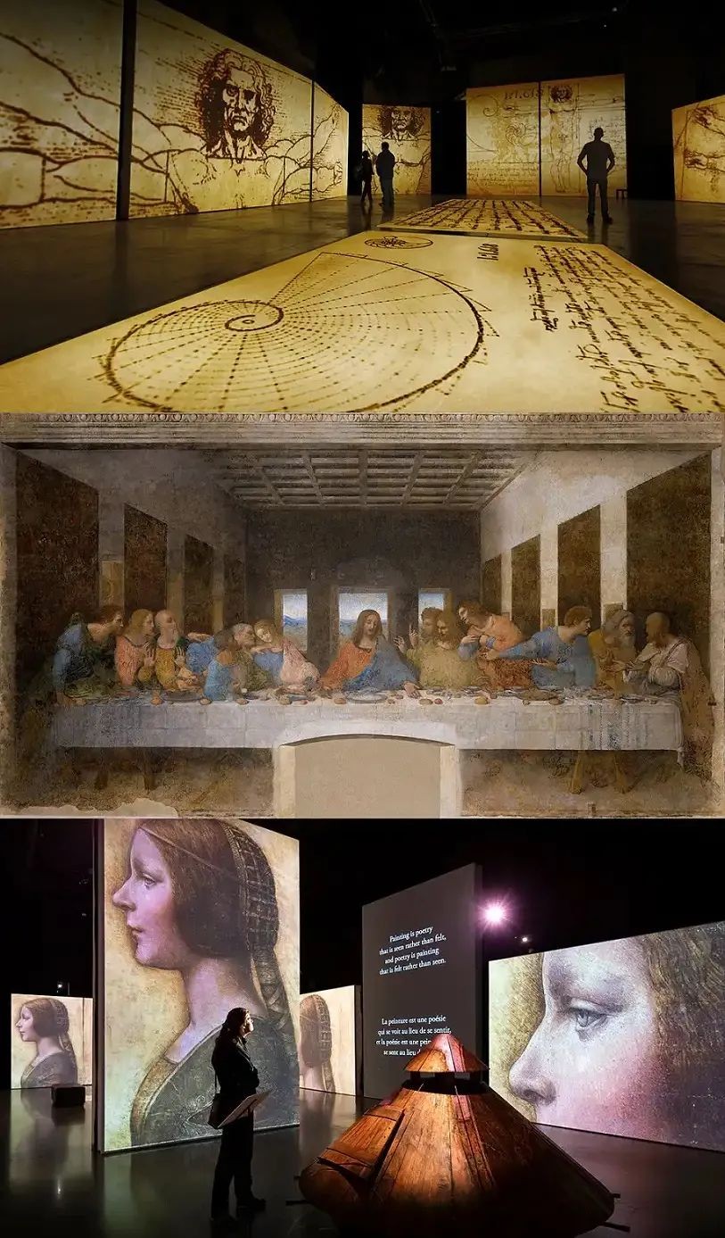 达芬奇再现,用世界一流电影级数字声、光、电技术完美呈现了达芬奇一生知名的画作手稿与发明物,通过沉浸式光影和买物展小的方式,再现文艺复兴时期人类艺术与科技的辉煌。