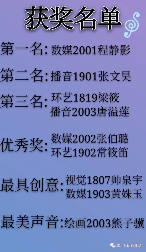 这次的配音大赛,参赛者们都展现了自己独特的风格,发挥了自己独特的优势,让我们看到了一场听觉上的盛宴。为枯燥无味的大学生活增添了一丝丝耀眼的色彩!