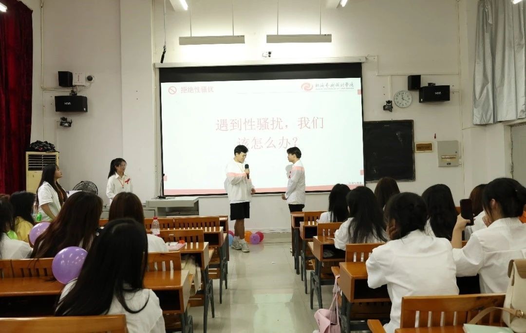 活动的重头戏情景演绎将活动推向高潮。经过前面环节的铺垫,大家已不再拘谨,积极参与讨论与分析。通过情景演绎的小游戏,提高了同学们对性骚扰行为的敏感度和防范意识。