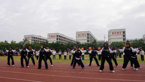 随着音乐停止,运动场上响起了动人的进行曲,随之依次入场了动传、建环、美术、人教学院的运动员和表演方阵以及教师代表、裁判员方阵。
