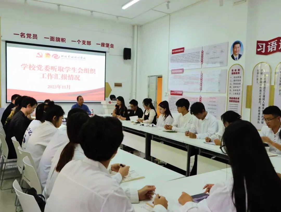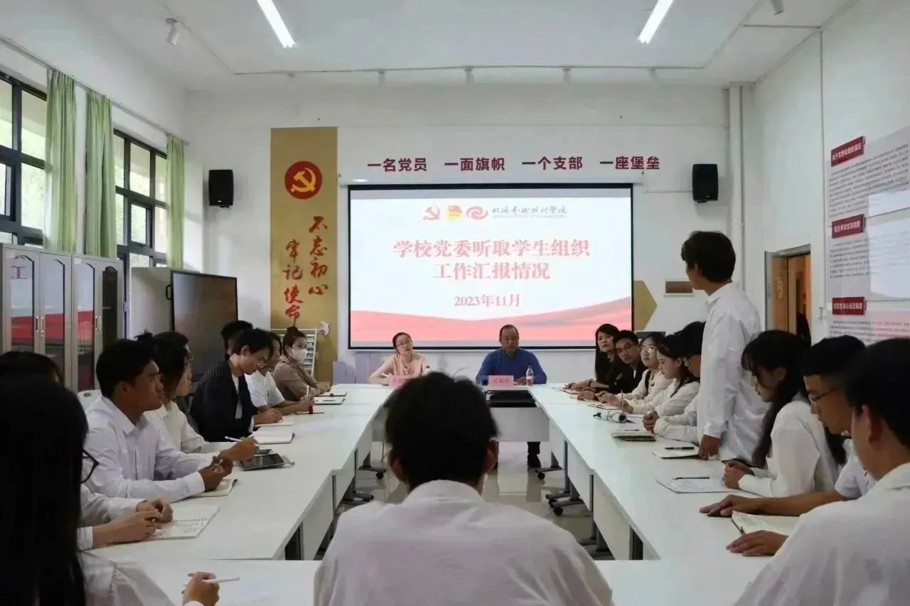 我校党委听取学生组织工作汇报座谈会在11月24日于行政楼103会议室召开,校党委书记范徽忠出席会议并讲话,校团委书记唐良春及各二级学院分团委书记,校团委、各分团委团干、团员代表共30余人参与会议。会议由校团委副书记宋慧敏主持。