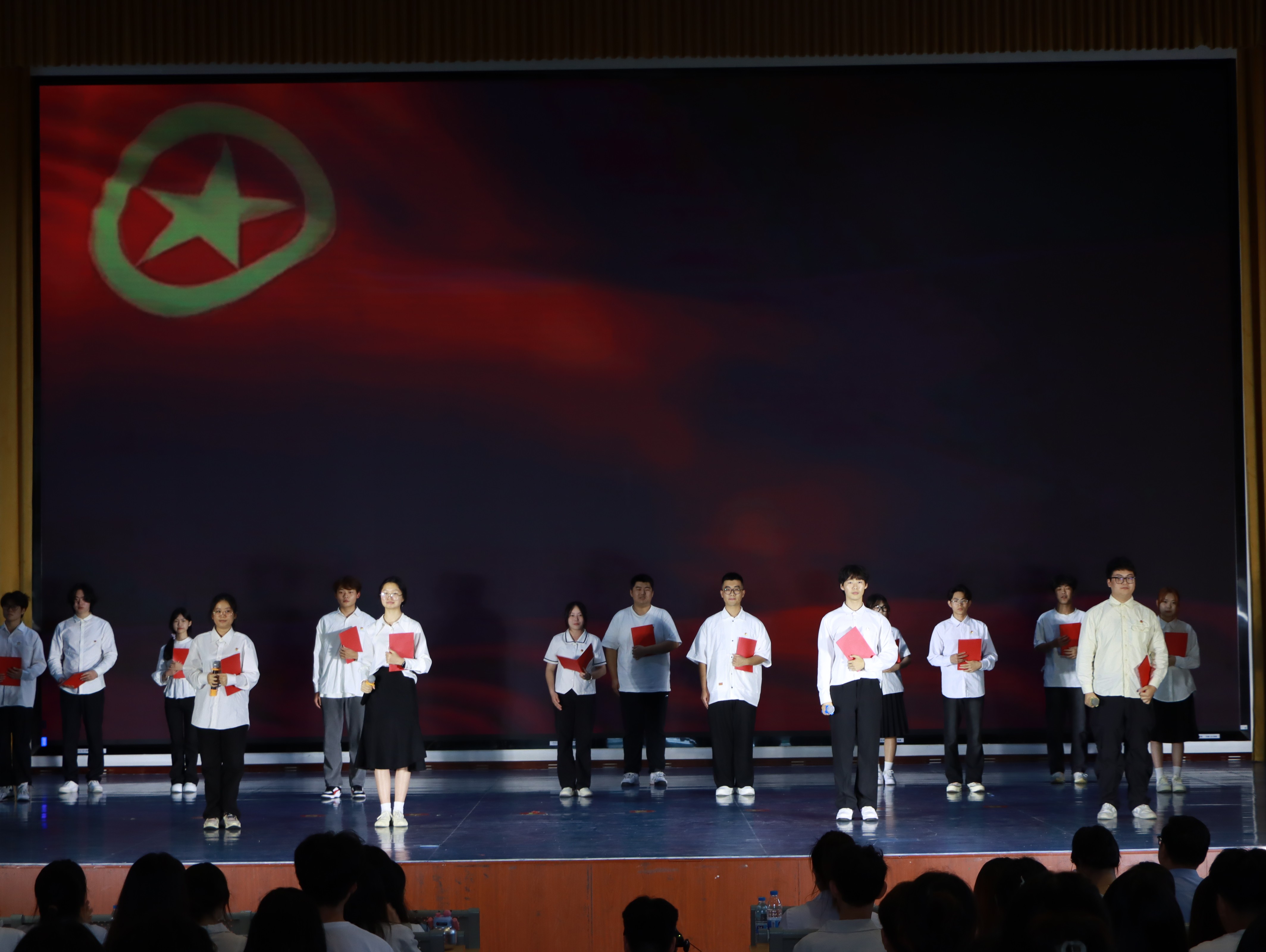 在团委书记唐良春同志的坚定引领下,新老团员们整齐肃立,庄严宣誓。礼堂内,誓言如金石般回荡,它不仅仅是一纸简单的誓词,更是我们心中对青春理想的坚守,对未来使命的担当,是我们矢志不渝、砥砺奋进、共筑梦想的庄重承诺。