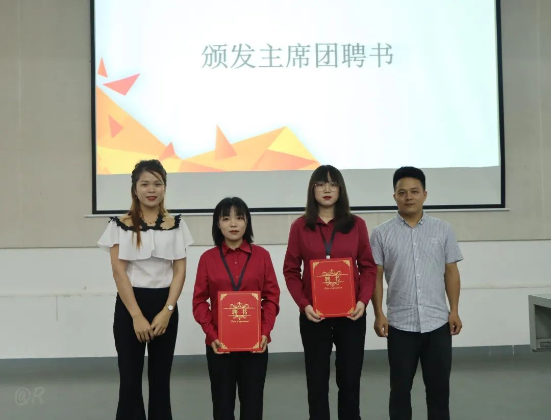 会议第五项,由团委书记唐良春和团委副书记宋慧敏为主席团颁发聘书。