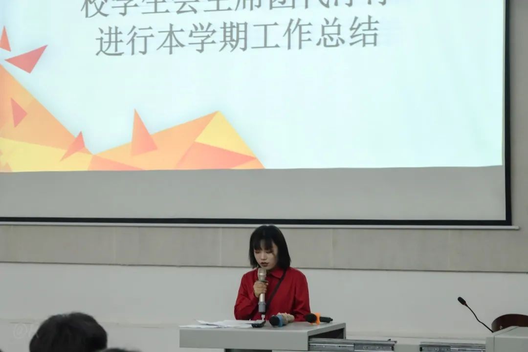 会议第二项,由校学生会主席团代表代淳淳进行本学期工作总结