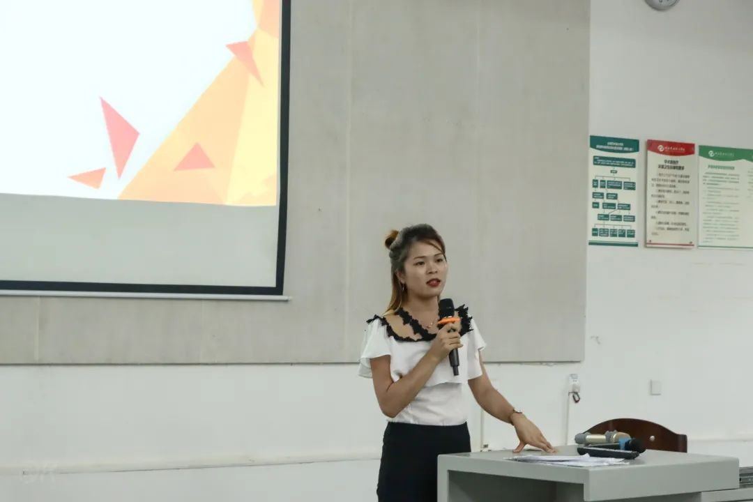 青年志愿者协会成员董金梦主讲本学期部门的工作总结。在本学期举办的志愿者培训会中,提高了志愿者的素养,贯彻落实志愿者精神,不断壮大志愿者团队,更好地延续志愿者文化。并表示在以后的工作中将做到提高成员的志愿能力,丰富活动内容,有则改之,无则加勉。