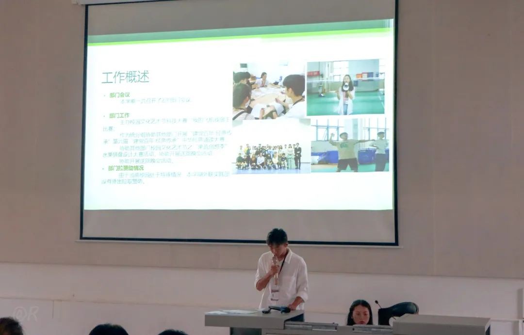 外联实践部成员王镜然主讲本学期部门工作总结。从各个方面对本学期部门负责的一系列工作做了回顾总结,并表示在接下来工作的过程中汲取教训,予以改正,以最饱满的热情以及认真的态度投入到往后的工作中去。