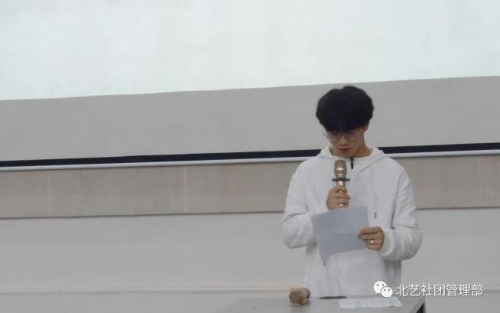 主席团代表魏天意讲了社团的日常工作,社团开课考勤和社团卫生检查的要求。