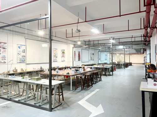 建环学院模型工坊位于北海艺术设计学院西校区学生宿舍楼11栋负一层,使用面积接近1600㎡,可容纳300多名师生进行学习,目前拥有与市场行业内对应的优质机器加工设备,其中包括激光雕刻切割机、重型木工车床、细木工带锯、砂光机、钻床、平刨机等,能满足不同项目模型类型的制作加工,并且配备有1名安全技术人员、1名艺术指导、2名工坊管理教师,为环境设计专业实验课程提供了专业的技术指导以及完善的设备物质保障。