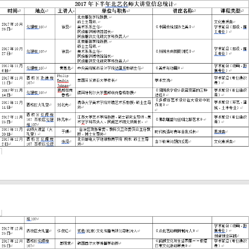 2017年下半年北艺名师大讲堂信息统计