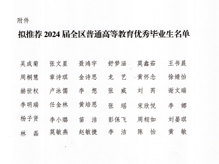 (拟推荐2024届全区普通高等教育优秀毕业生名单)