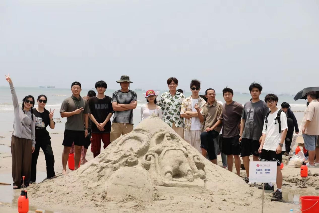 建筑与环境艺术学院学子在沙滩上尽展饱满热情与青春风采。在沙雕、沙滩排球、袋鼠跳、同舟共济、巨人脚步、水到渠成比赛项目中挥洒青春汗水,建环学院喜获第二十一届沙滩运动会团体总分第二名。(建环学院学工办/摄)