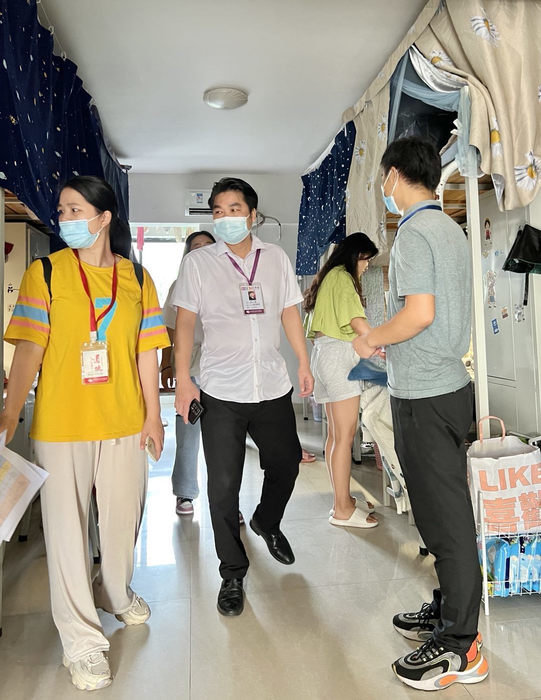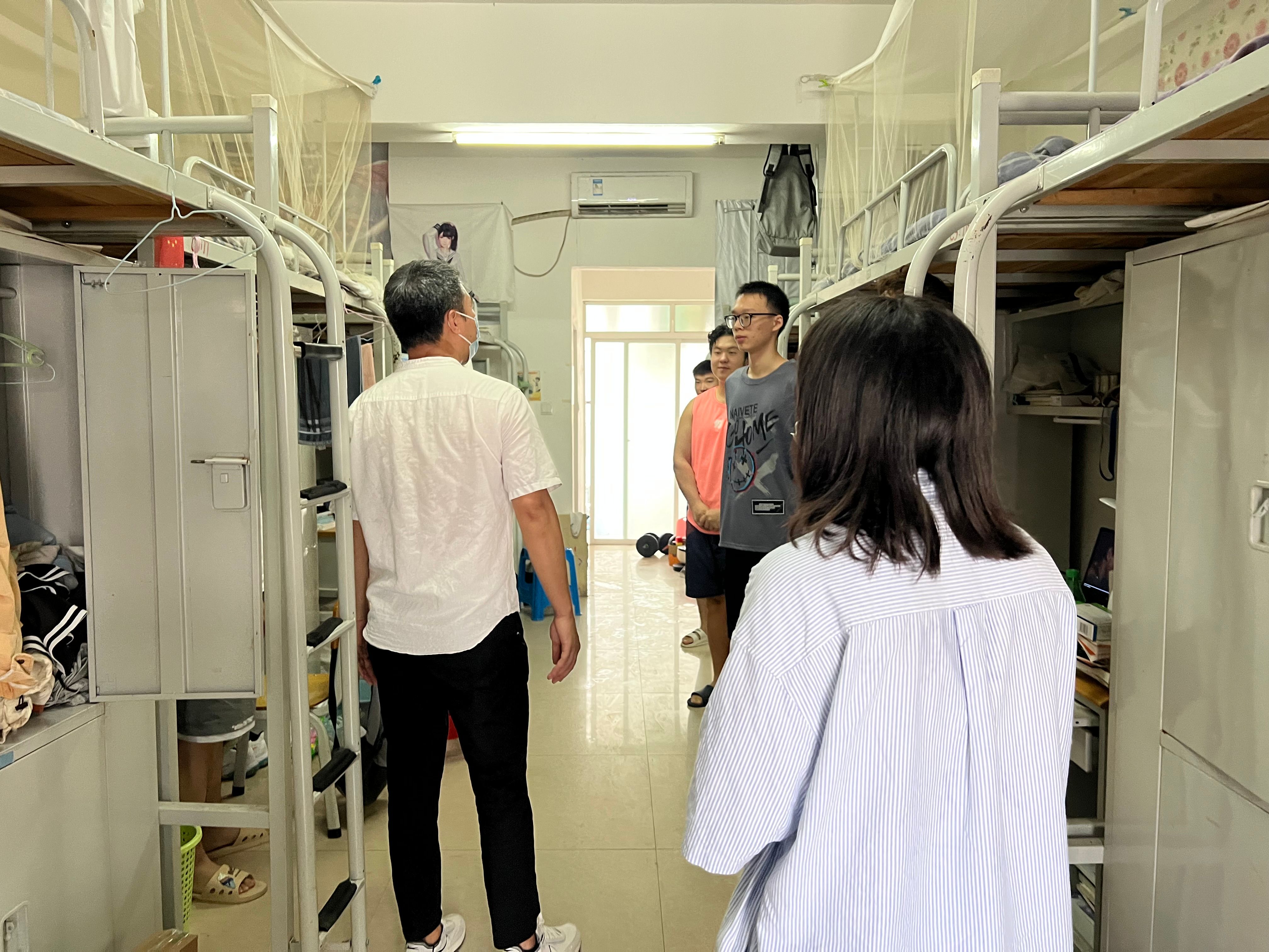 在走访寝室过程中,刘承初书记与同学们亲切地交谈,了解同学们到北艺后的感受,对同学们嘘寒问暖,送上中秋节日祝福。刘书记非常重视寝室安全,发现消防、财产、设施等安全隐患,立即指导现场整改,提醒同学们提高安全防范意识,确保大学生活安全有序。刘书记希望同学们调整状态,尽快融入在北艺的大学生活,珍惜青春时光,努力搞好专业学习积极参加社会实践,与同学友好相处,在北艺学有所成,不负时代,不负韶华,为实现中华民族伟大复兴贡献青春力量。