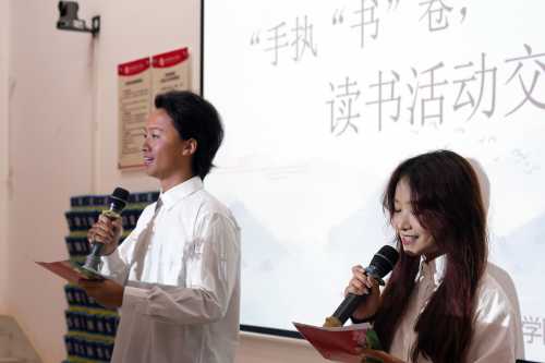 本次读书交流会线上与线下相结合,线上通过设计书签感受书香文化底蕴,线下进行读书交流分享,和书本来一场浪漫的春日约会。(彭程/摄)