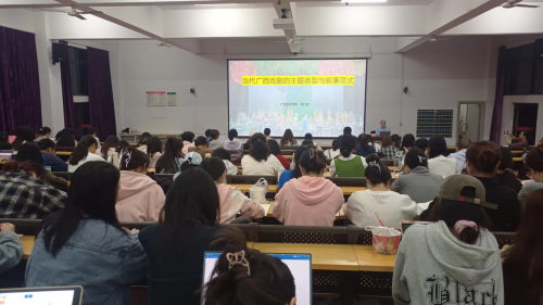 11月28日晚上,广西艺术学院谢仁敏教授应邀于我校西校区伦理楼107,为广大师生带来了一场题为《当代广西戏剧的主题类型与叙事范式》的精彩讲座,讲座旨在介绍广西戏剧的主题并探讨当代广西戏剧的发展困境。讲座由人文教育学院梁镨文副院长主持。
