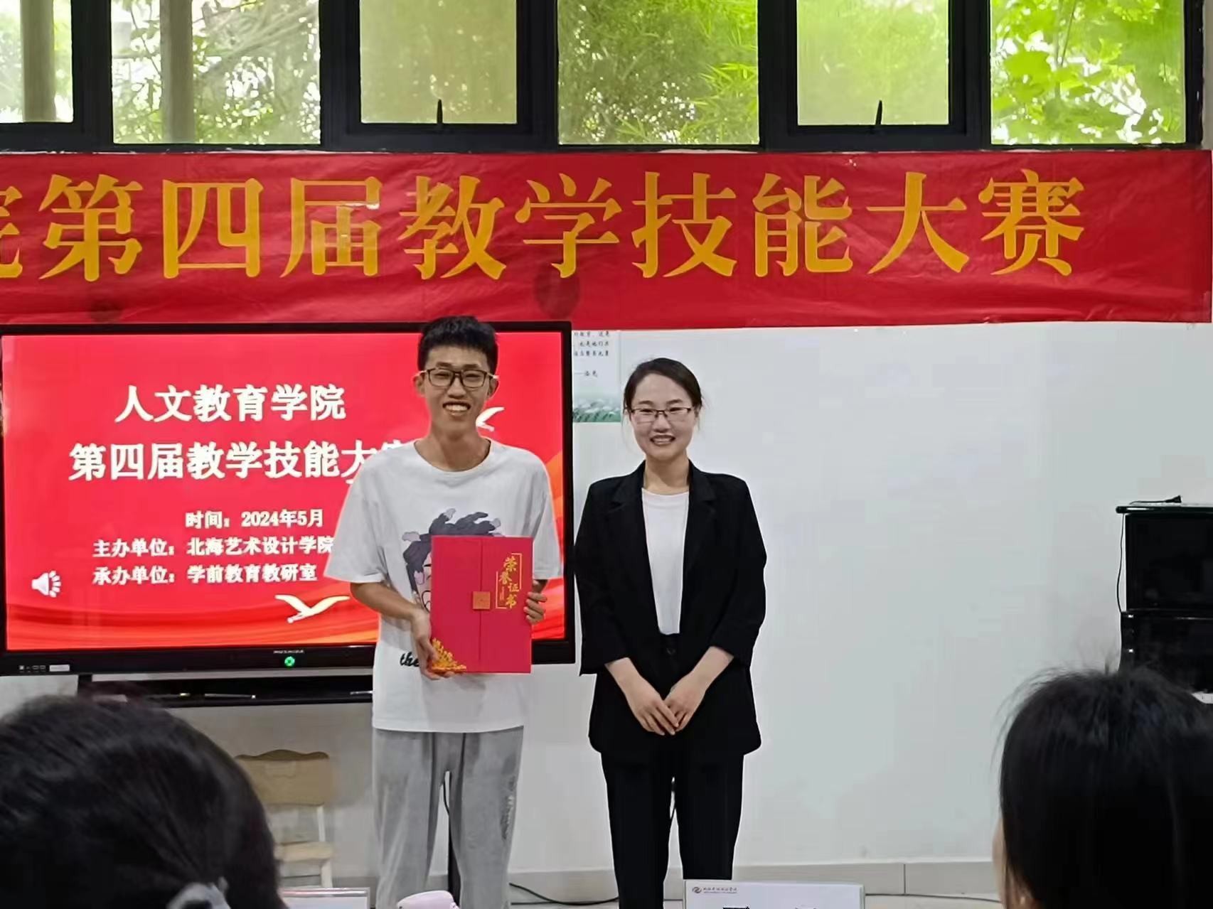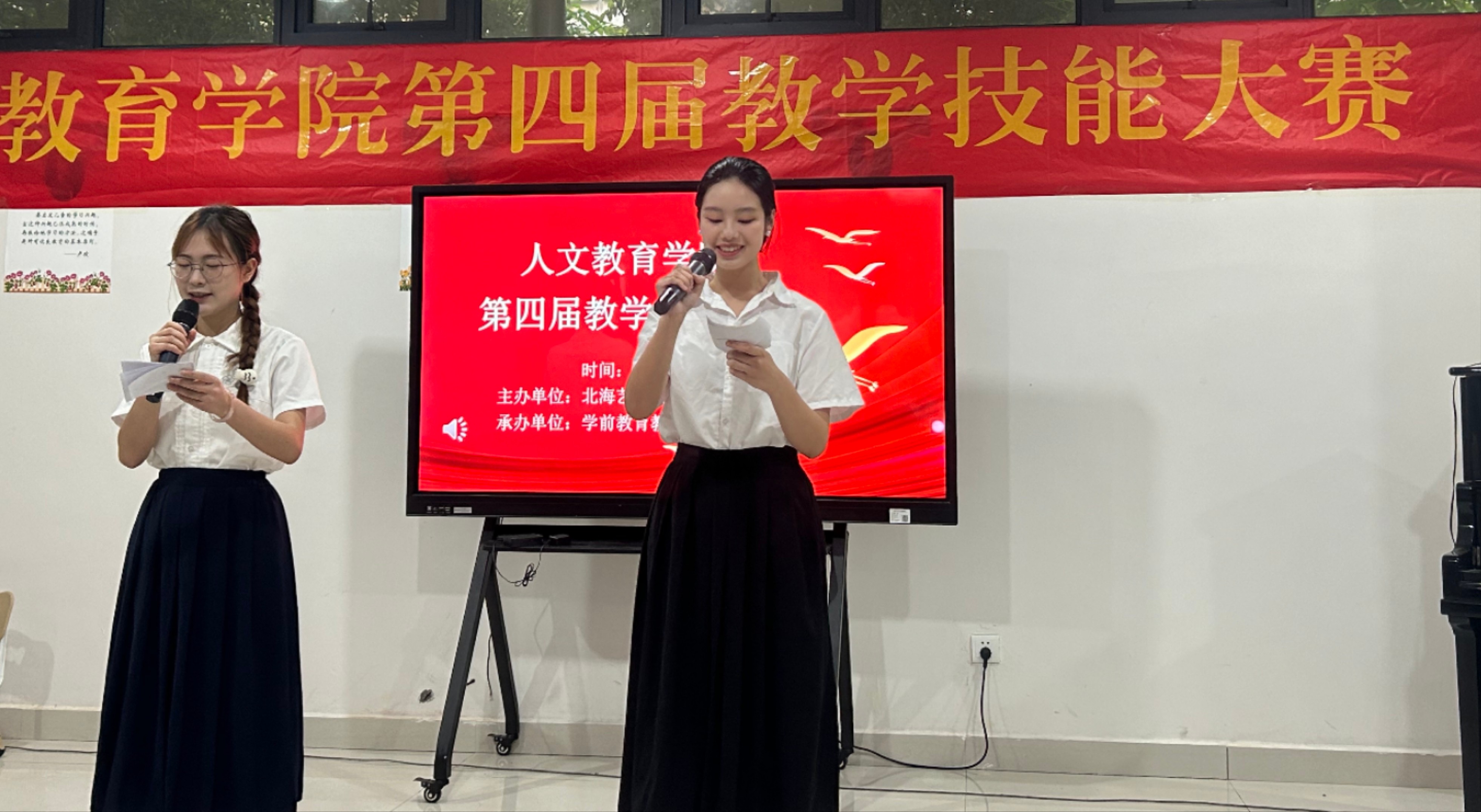 以赛促学、以赛促教、以赛促研,为发挥竞赛对提高职前教师教学技能的引领作用,提高专业人才培养质量,展示学生的专业技能和风采,2024年5月6日至10日,人文教育学院第四届教学技能大赛在西校区4栋103室举行。海城区第一幼儿园园长罗倩,银海区机关幼儿园园长杨文波,人文教育学院院长熊秀峰、副院长李谦等领导、嘉宾出席比赛开幕式。