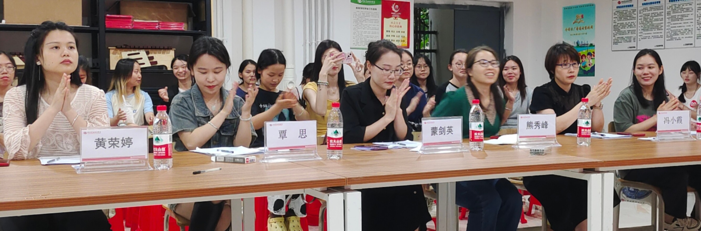 本次大赛的评委由学前教育教研室主任蒙剑英老师、学前教育教研室副主任覃思老师、人文教育学院实验室副主任冯小霞老师、学前教育教研室黄荣婷老师和雷蕊老师担任。