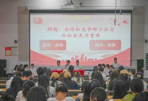 比赛采取初赛、决赛两轮赛制,赛程共设立立论质询、交替盘问、自由辩论、总结陈词四个环节,各队伍围绕“合作还是竞争在当今社会更为重要”“AI的发展会不会导致人类创造力的衰退”等辩题展开辩论。由评委老师为各队伍与选手进行打分,评比出一、二、三等奖及最佳辩手。此赛制不仅能够体现小组整体实力,更能在多轮比拼中充分展现参赛选手的个人实力。