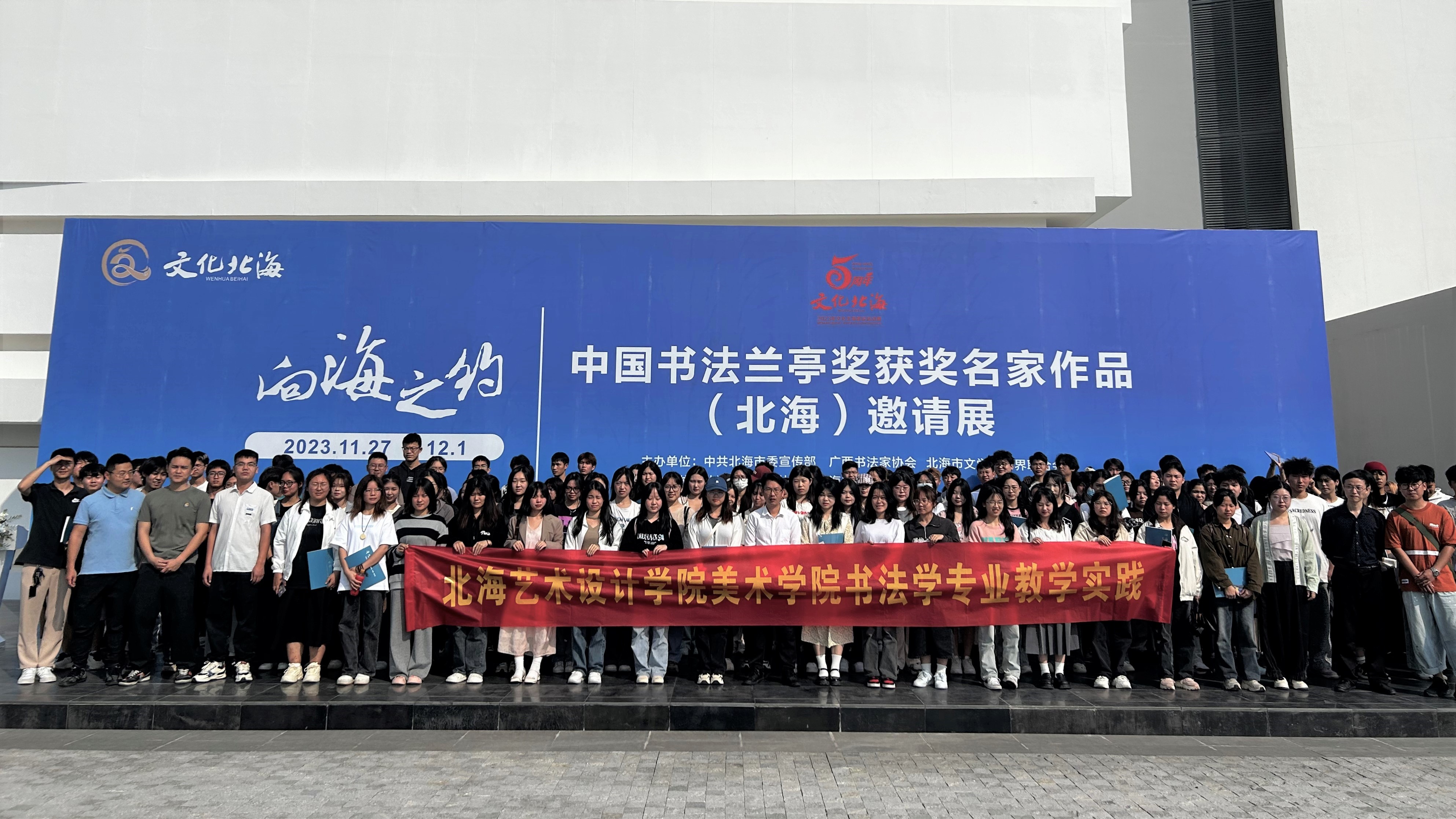 2023年11月27日上午,美术学院书法学教研室由苏乃从主任带领、专业教师组织书法学2022级、2023级学生前往北海爱马思美术馆参观“向海之约”——中国书法兰亭奖获奖名家作品邀请展。