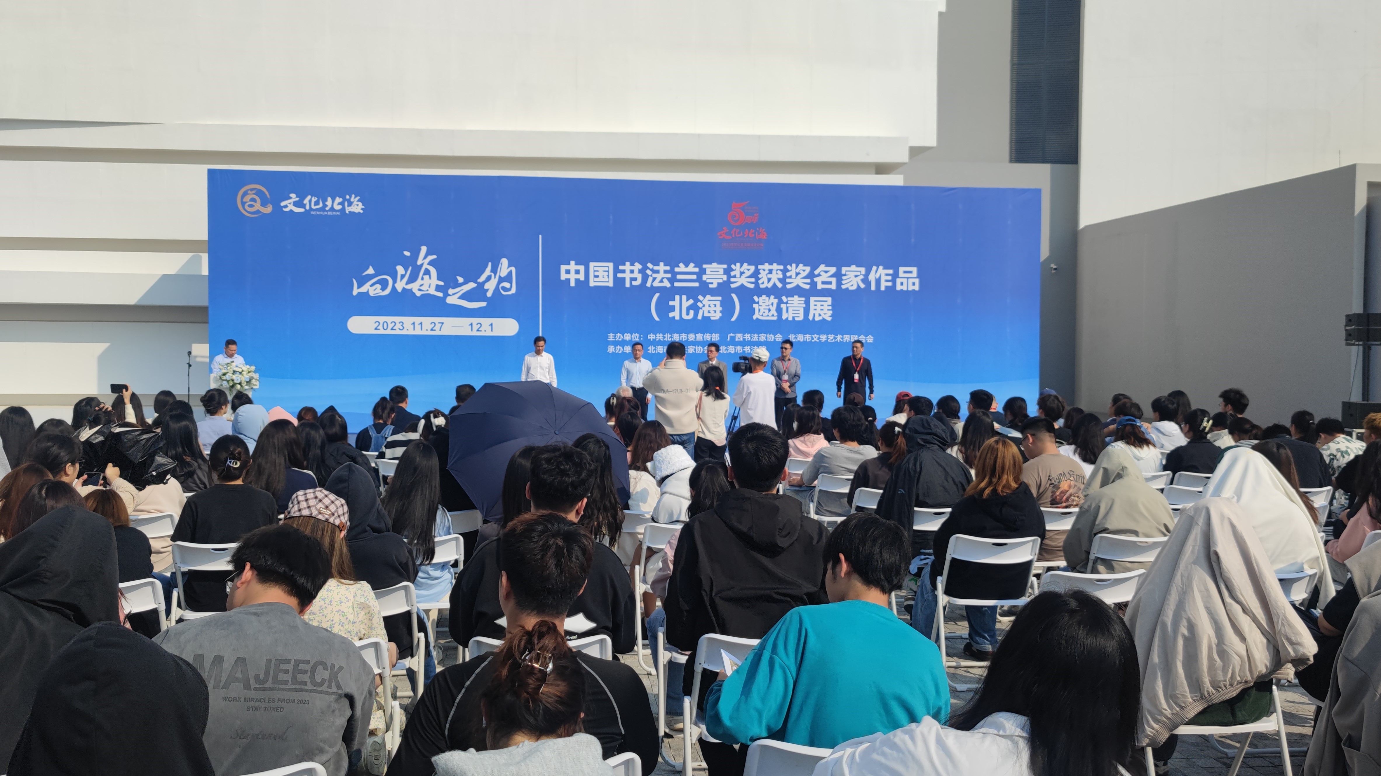 本次“向海之约”——中国书法兰亭奖获奖名家作品邀请展,由中共北海市委宣传部、广西书法家协会、北海市文联主办,北海市书法家协会、北海市书法院承办。本次展览由广西书协副主席、北海市文联党组书记、主席刘蒙平主持。刘主席表示将书法艺术与传承海上丝绸之路文脉、展现向海文化有机地结合是本地中青年艺术家的重要责任与创作方向,而此次展览也是广西首次举办中国书法兰亭奖获等级奖名家作品邀请展。
