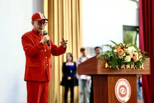 2024年12月5日,一级演员、中国著名表演艺术家六小龄童——章金莱老师受邀来到北海艺术设计学院,为全校师生带来主题为《〈西游记〉文化与美猴王精神》的精彩讲座。本次讲座由文学院主办,常务副院长梁镨文主持。