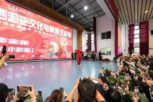 在讲座即将落下帷幕之际,全场气氛达到了最高潮。章金莱老师金箍棒在手,英姿飒爽,瞬间点燃了所有人的热情。表演中,章老师不仅展现了高超的武术技巧,更通过细腻的表情和肢体语言,将孙悟空复杂的性格特征刻画得淋漓尽致,让观众仿佛身临其境,亲眼见证了孙悟空从顽皮的石猴成长为一代英雄的传奇历程。这一刻,全场响起了经久不息的掌声,不仅是对章老师精湛演技的赞叹,更是对《西游记》这部经典作品以及其中所蕴含的深厚文化底蕴的致敬。