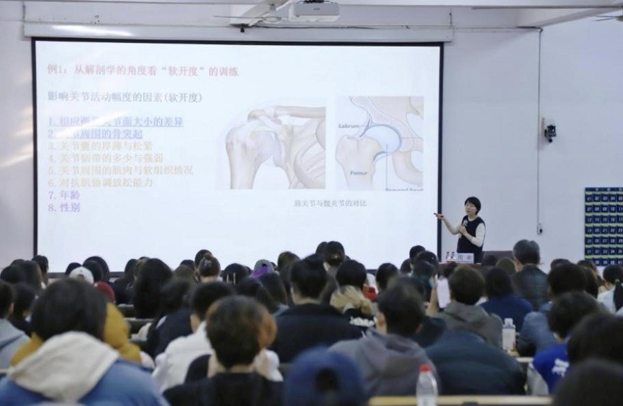 讲座中,周娜教授对舞蹈科学、舞蹈的源起与发展、国内舞蹈科学的发展做了详细的讲解。同时也对舞蹈解剖学、生理学等科学知识给同学们进行了深入讲解,让同学们对身体结构与舞蹈动作的关系有了全新认知。生理结构在保持身体平衡稳定、助力动作精准发力与流畅衔接方面会起到很关键作用,以及不同关节活动范围对动作幅度和规范性的影响。