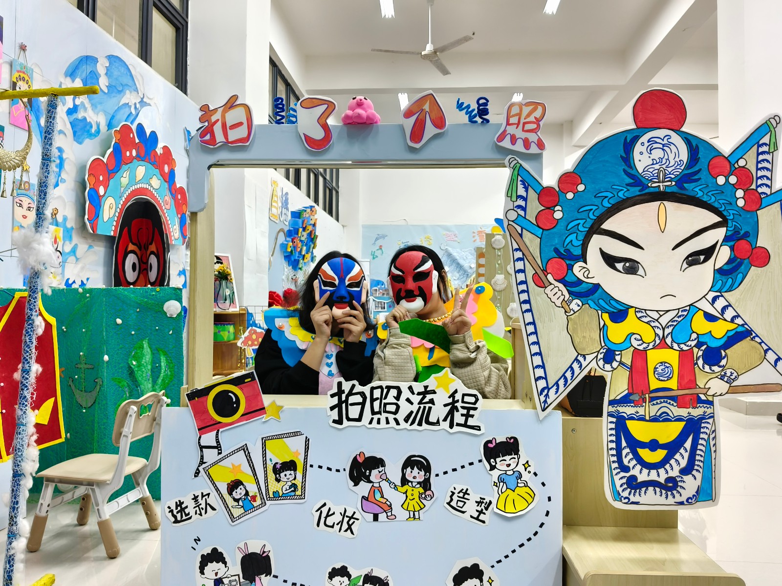 幼儿园环境创设课程是美术综合知识技能结合幼儿园实践工作的具体实操课程,专业指向性强。本课程使学生初步具备独立创设幼儿园环境的能力,树立正确的学前教育观念。本次结课汇报展共展出作品六组,均以幼儿园环境创设基本理论为基础,联系教育见习经验,并巧妙结合北海地方文化特色。此次汇报展是对学前教育专业阶段性教学成果的一次检验。