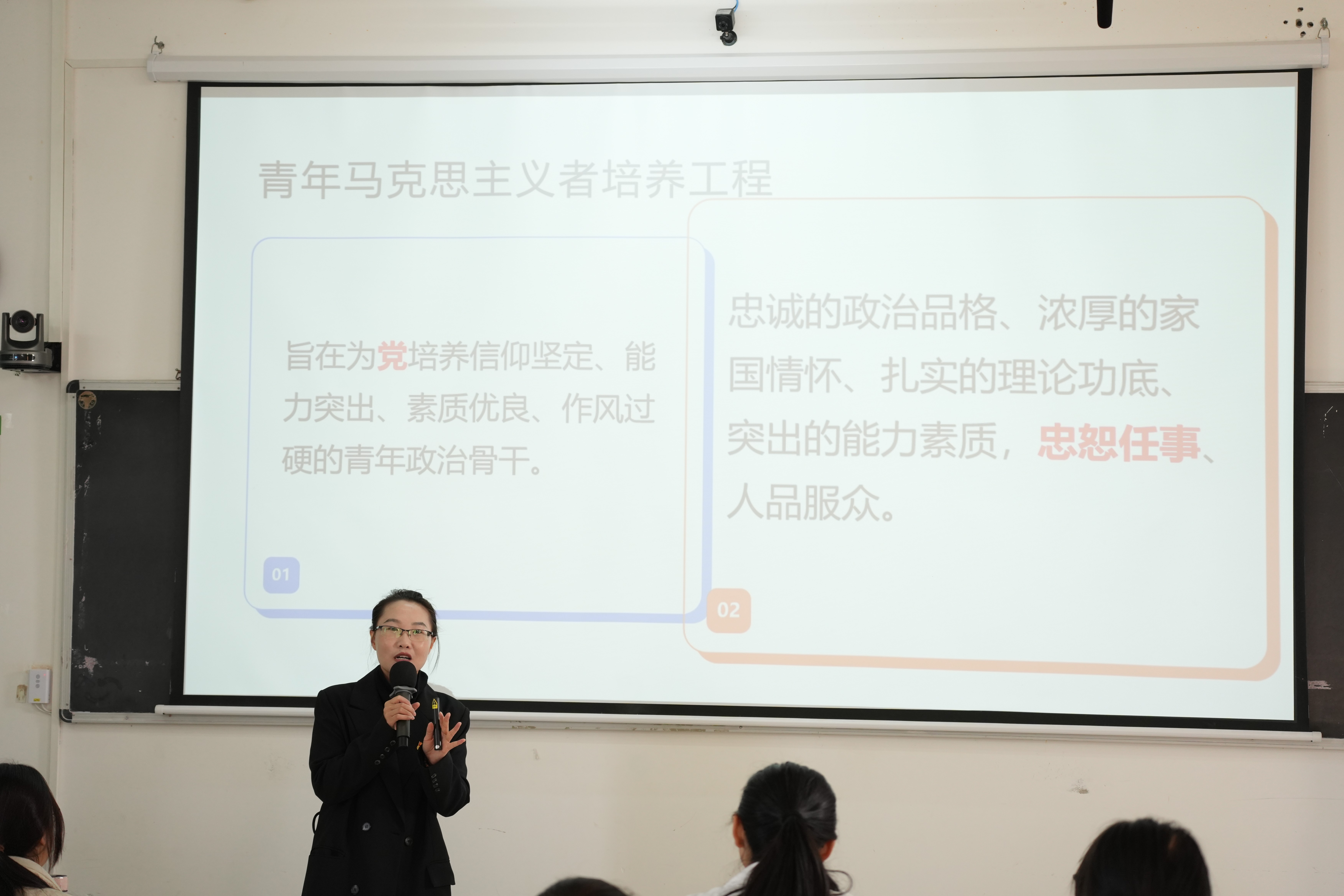 教育学院副院长剑英围绕“知己、任事”开展了授课。她强调践行马克思主义者不仅要有理论,更应有实践。在实践中练就过硬本领,践行好“忠恕任事”,要具有坦荡胸怀的品,成为具有责任感使命感团队协作能力突出、作风过硬的青年政治骨干。
