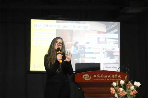 在此次系列讲座中,伯纳丁・穆雷院长指出要坚持以学生发展为中心的教学策略,她还通过视频向现场师生展示了切斯特大学“穿越界限”项目和该校优秀毕业生的作品,表明要重视在理论课程中融入实践课程,注重利用当地资源,加强校企融合和产教融合,培养学生的独特性,通过优秀的资源平台,提高学生附加值,为学生将来的发展方向指明道路。