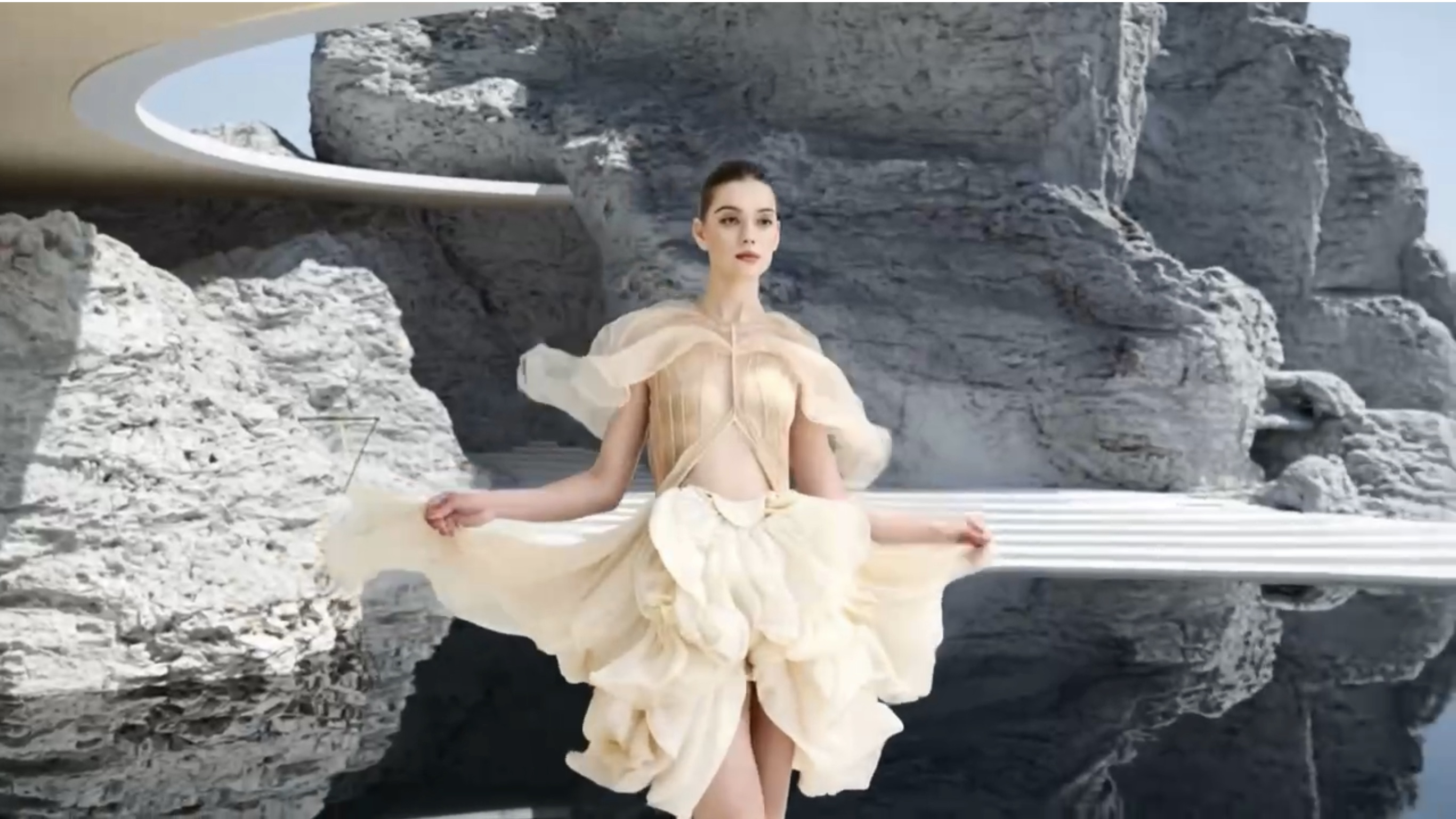 本次虚拟秀场以“溯”为主题,分为“溯源”“溯洄”“溯游”三个系列,分别聚焦文化传承、可持续时尚与现代创意设计,汇聚了119位毕业生的设计作品,集中展示了200余套数字实物成衣,全面展现新一代青年设计师对时尚的理解与实践。本次虚拟时装秀由服装学院师生组成的AI时尚团队以AI生成模型为创作引擎,通过对大量手绘效果图和成衣大片图像数据的训练,精准理解并还原服装的色彩氛围、面料质地和廓形结构,从而生成虚拟动态视频,再由AI艺术学院师生团队进行后期渲染与剪辑,实现了从草图到成衣再到虚拟时尚形象的智能创作,深度结合了现实与虚拟效果交互,呈现了AIGC融入教学改革、跨专业交流等方面的最新成果。
