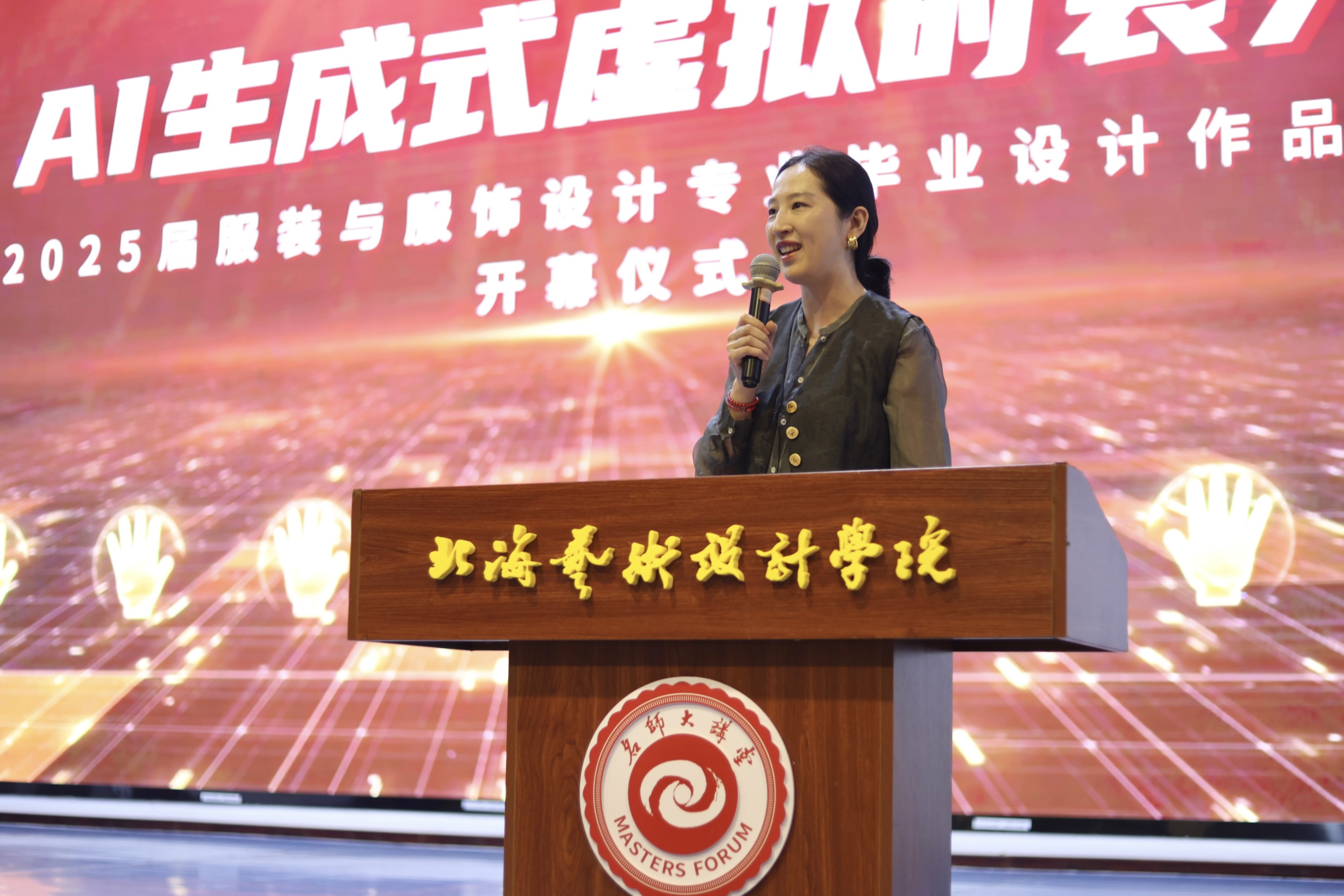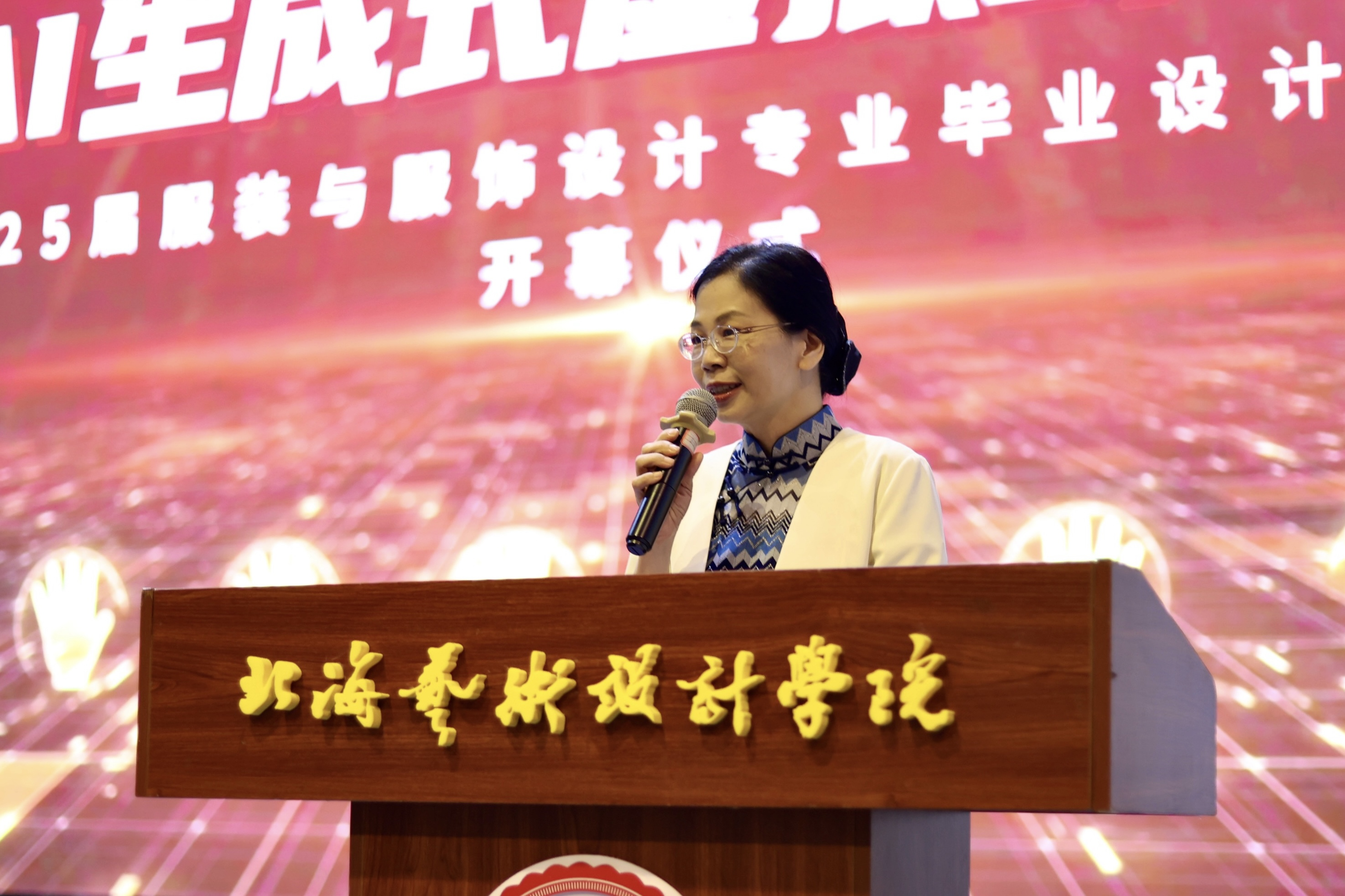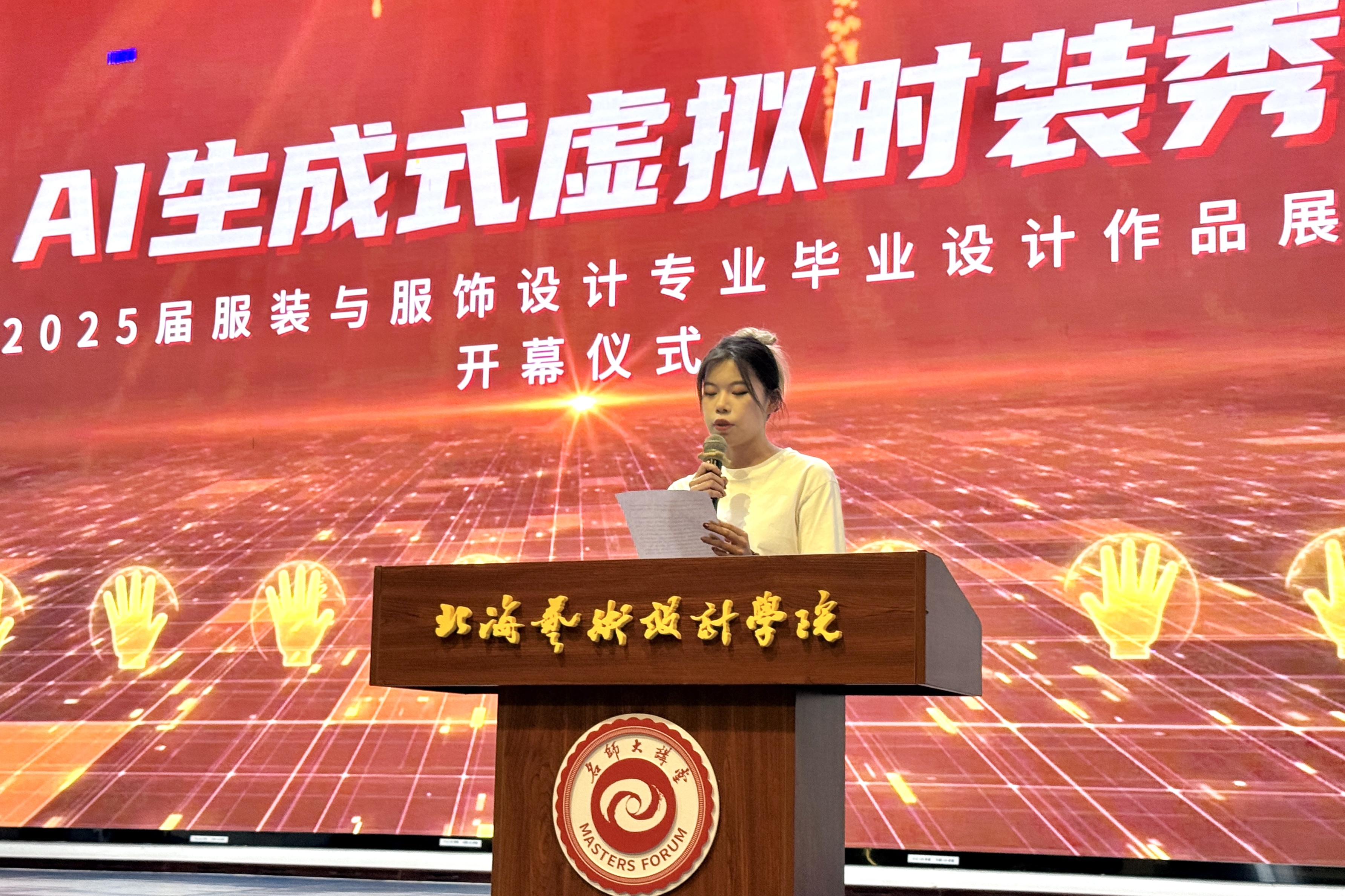 5月26晚上,北海艺术设计学服装学院·AI生成式虚拟时装秀2021级优秀毕业设计作品展在西区大礼堂拉开帷幕。北海艺术设计学院校长卢新华,学校党委副书记陈毅华出席开幕式。