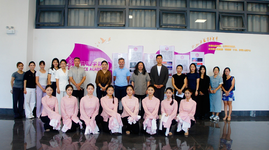 英国切斯特大学David McGravie教授武虹辰先生和学校常务副校长胡胜教授与舞蹈学院师生合影