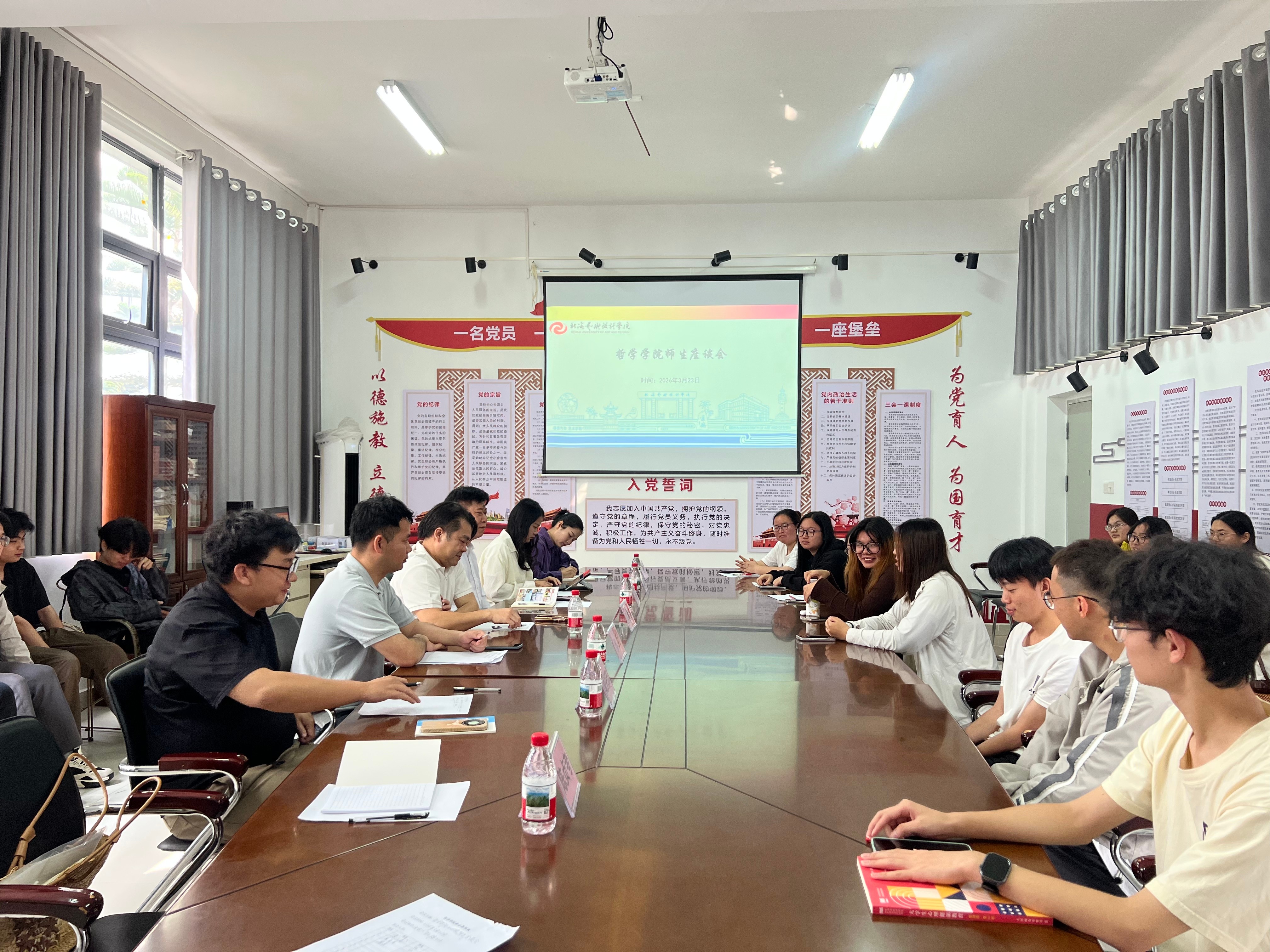 为全面了解学生学习和生活状况,及时掌握学生需求,提升教学质量和服务管理水平,3月23日上午,哲学学院分别在学工楼204会议室、公德楼204会议室召开师生座谈会,学院党支部书记谢伟、常务副院长李水亮、副院长蒋辉平、覃传茵、梁兵、各部门负责人、教师代表及哲学2501、2502班全体学生参会。