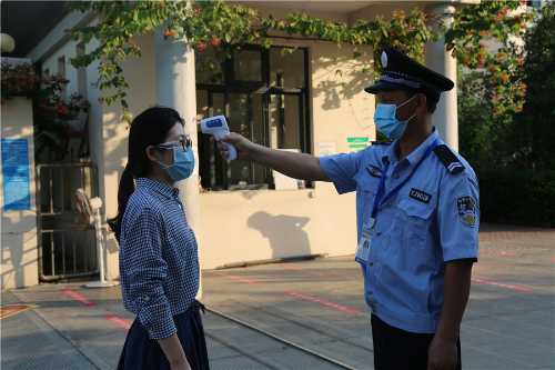 本次模拟演练按照预定流程开展返校进入校门、返回宿舍、教室上课、食堂取餐等四个环节演练。模拟学生返校后,消杀行李、扫码入校、测量体温、核验身份进入校园;返校经体温测量、扫码验证进入宿舍;上课时经体温测量进入教学楼;下课前往食堂排队测温取餐的四个场景。针对各个场景中出现发热学生实施应急处置进行了重点模拟演练,展示了体温复测、询问诊断、隔离处置、报告疫情、转移病人、现场消杀、心理安抚等系列处置过程。
