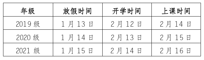 (一)根据疫情防控要求,学生采取错峰放假离校和错峰返校开学,具体时间安排如下: