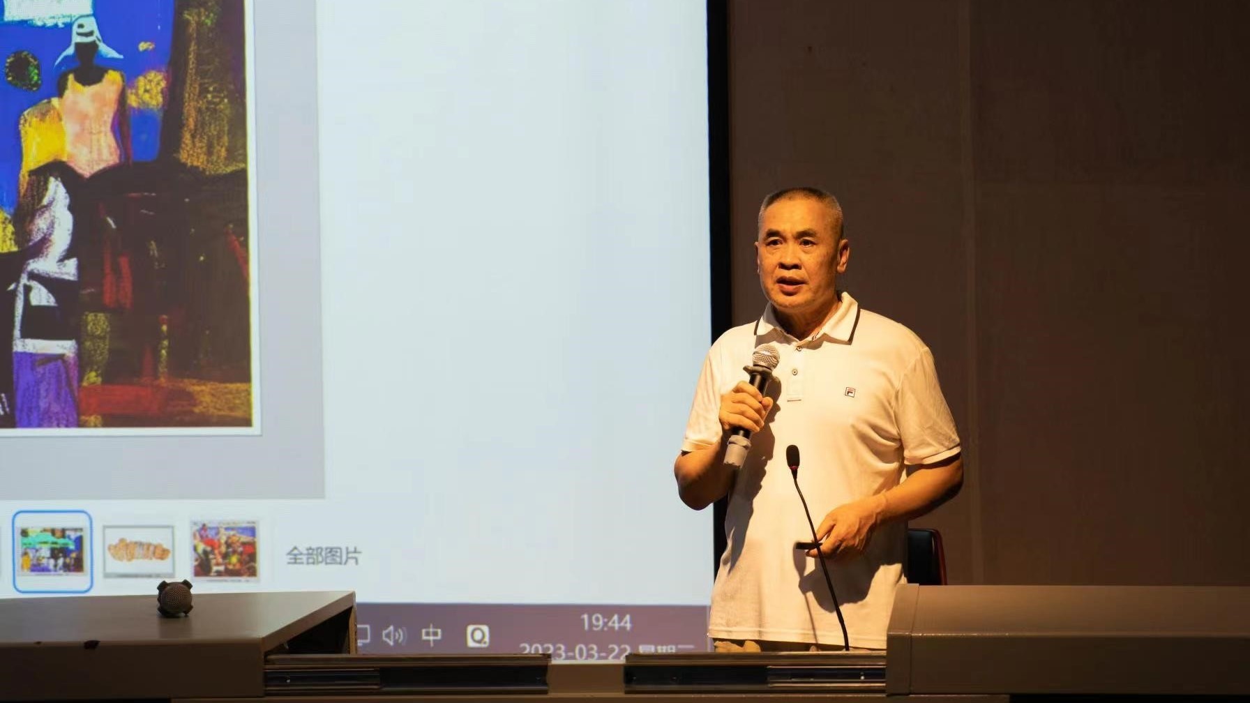 2023322日,于我校西校区伦理楼107教室,刘广滨教授为我校美术学院绘画20-22级水彩方向的学生带来了一场题为《水彩画的个性语言》的精彩讲座,讲座由美术学院教师段凝老师主持。
