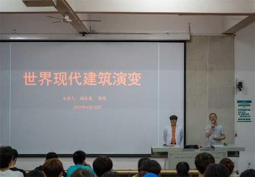 讲座伊始,陆志成教授简单介绍了世界现代建筑在年代、产业、哲学和美学的演变,以及他对建筑行业与环境设计专业的见解,从而延伸出世界现代建筑演变与环境设计专业的关联性。