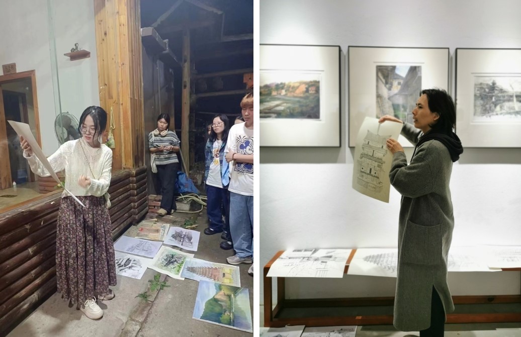 写生实践过程中,美术学院巫维轩教授、韩莉教授,以及美术学专业教师为学生进行了现场示范指导。