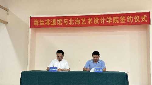 2024年3月26日,北海艺术设计学院美术学院龚为院长一行四人前往北海市非遗体验馆走访调研,与北海市工艺美术协会、非遗传承人们探讨地方非遗发展。在二十余位工艺美术大师和非遗传承人的见证下,我院与广西海路非遗文化传播有限公司圆满完成了校企合作签约仪式。