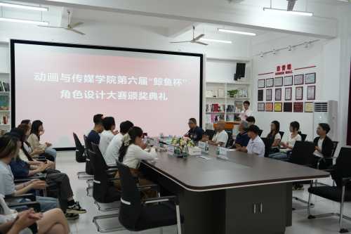 为加强学院文化建设,丰富和拓展学院文化内涵。经过近3个月的精心筹备和激烈角逐,6月6日上午,动画与传媒学院第六届“鲸鱼杯”角色创意设计大赛迎来了颁奖仪式。动画与传媒学院张帆书记、动画专业带头人王钢教授、资深教授廖大勇,学院副院长杜博、刘涛、李宗毅以及30名师生参加了此次颁奖仪式。