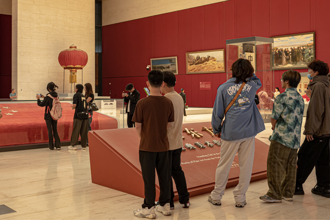 此次专业考察的第一站就是“北京中轴线”的重要组成部分——天安门广场及建筑群(中国国家博物馆),组织参观了馆内的《屹立东方——馆藏经典美术作品展》等主题展览。