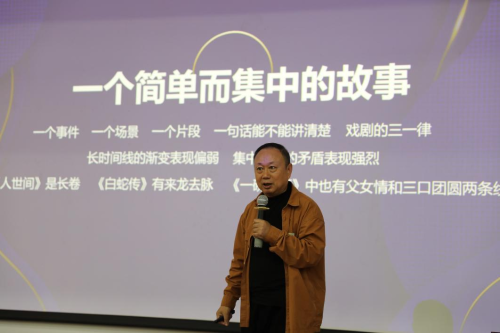 讲座伊始,罗沐教授聚焦于“如何构建动画短片创作的编导思维”,与在座的师生进行了深入探讨。他强调,动画领域是技术、艺术与商业的三位一体,这要求动画专业人才必须具备综合性的思维能力。这种特性不仅赋予了动漫产业强大的品牌影响力和跨行业联动能力,而且在意识形态方面也具有潜在的塑造作用。