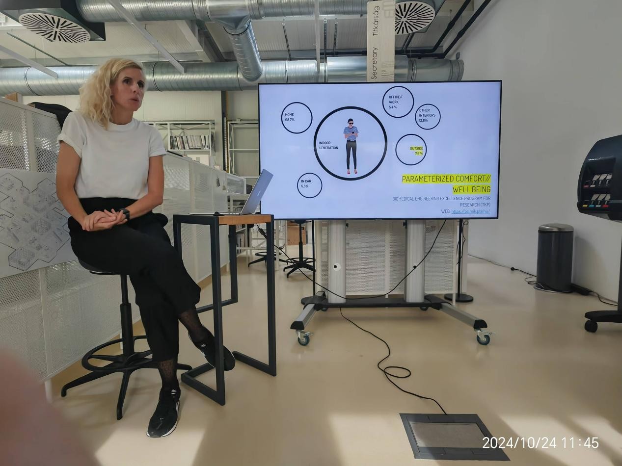 与此同时,代表团一行还参观了佩奇大学的设计实验室,该处集中展示了匈牙利设计教育领域的前沿探索与成果。佩奇大学机械工程系的Norbert教授向代表团阐述了该校的教学理念:“我们致力于引导学生在熟练掌握现代技术的同时,坚守传统工艺的精髓,因为这些是传统与创新相结合的设计灵感之源。”在校企合作单位考察环节,代表团参观了佩奇大型混凝土生产线,了解了建筑生态可循环理念和生产技术。