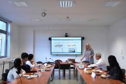 此次学术交流活动主要包括环境设计专业关于国际研究生人才培养的三个主要内容:国际教育方法探讨、跨文化课程教学及教学场所调研。代表团到达匈牙利之后,受到了佩奇大学工程与信息技术学院领导的热情接待。在首次国际教育方法交流会议上,佩奇大学工程与信息技术学院院长Prof Gabriella Medvegy回顾了佩奇大学与北海艺术设计学院的教育合作历程,并全面介绍了工程与信息技术学院的专业构成,学生数量以及国际生的培养模式和办学特色。