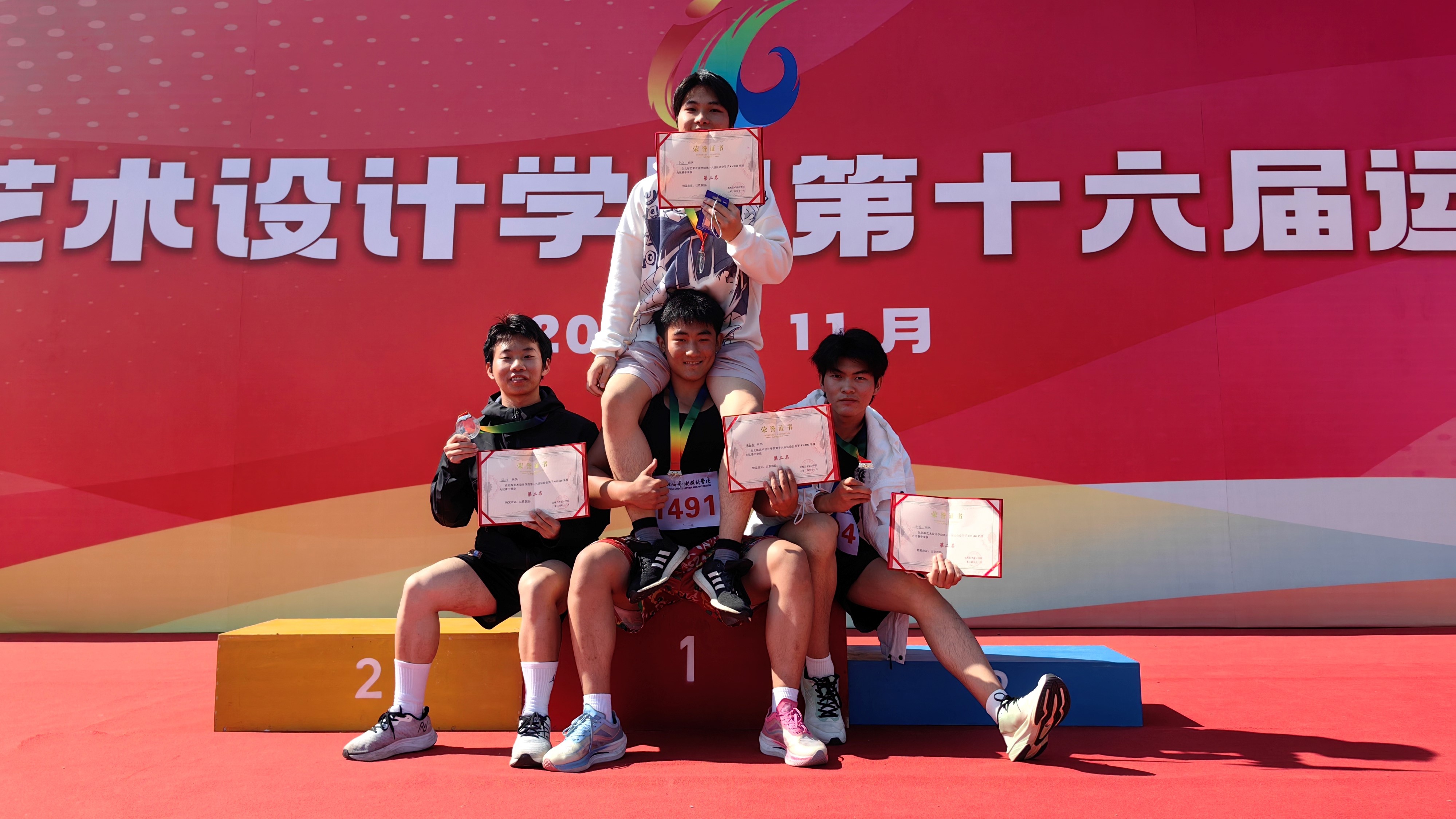 男子4×100接力项目第二名:李嘉豪、卢仪、施政、刘宇