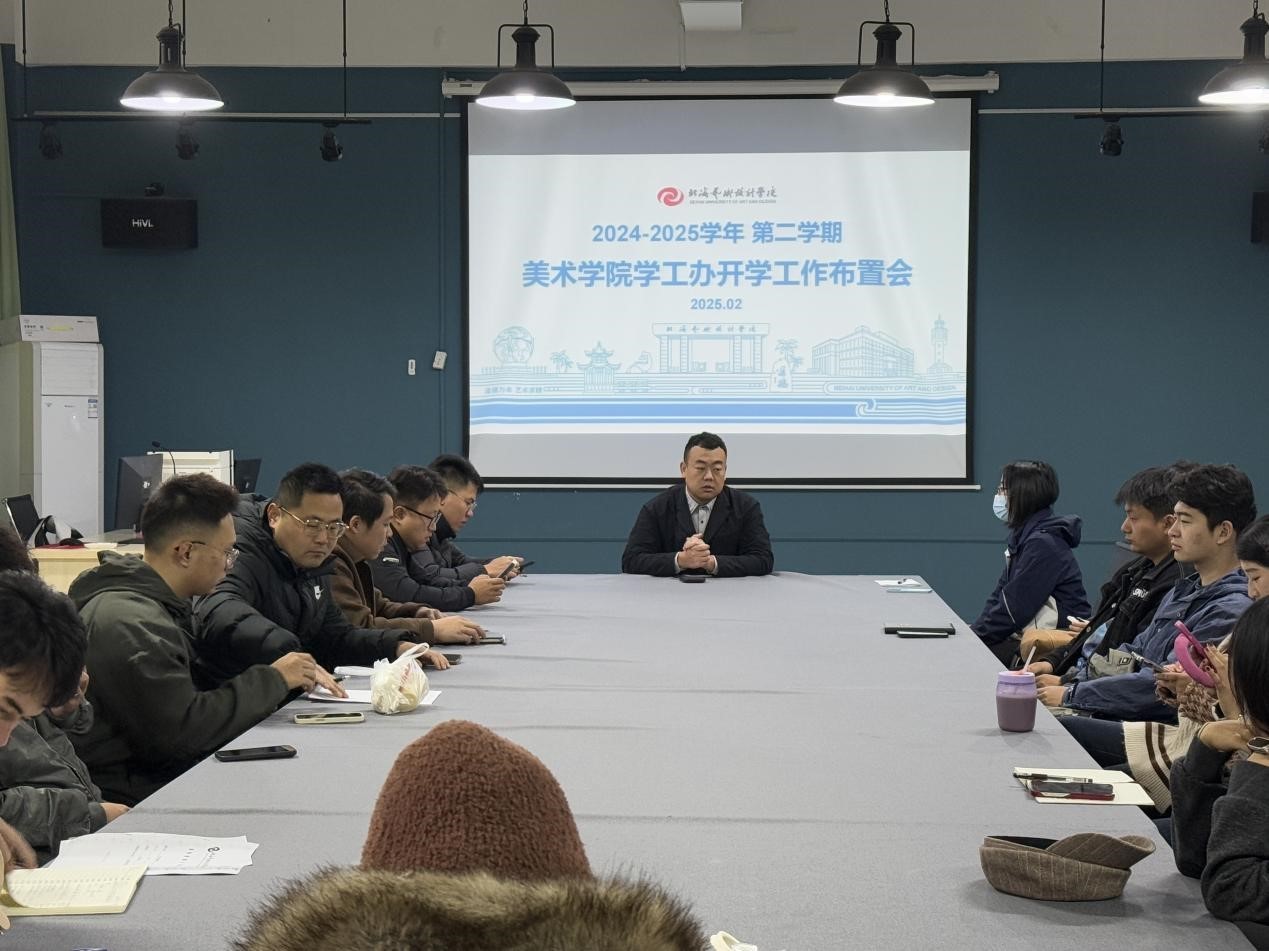 2025年2月6日,美术学院学工办于艺术楼313召开新学期工作部署会,会议由美术学院党总支副书记鲁明阳主持,学工办教师及各班级辅导员参加会议。