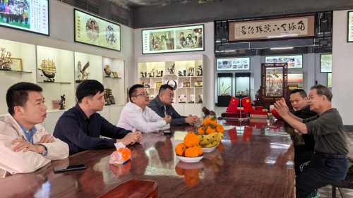 上午9时30分,学院一行首先抵达合浦金蝠角雕有限责任公司。作为传统工艺的杰出代表,角雕艺术在这里焕发出独特魅力。学院领导与企业负责人就合作事宜展开深入交流,不仅提及鼓励学院师生参与广西工艺美术大赛,企业负责人有望担任评委,为大赛注入专业力量,还针对雕塑课程教学达成共识。学院计划安排相关课程,带领学生亲身体验角雕艺术,深入了解角雕材料及简单技法,并指导学生创作作品参赛,从大学一年级开始,将雕塑专业学生分批培养,设定主题作业,按照比赛要求进行系统培训,共同推动非遗创作的传承与创新。企业方面也分享了大师带领师生获奖的经验,双方期待通过紧密合作,实现共同目标。
