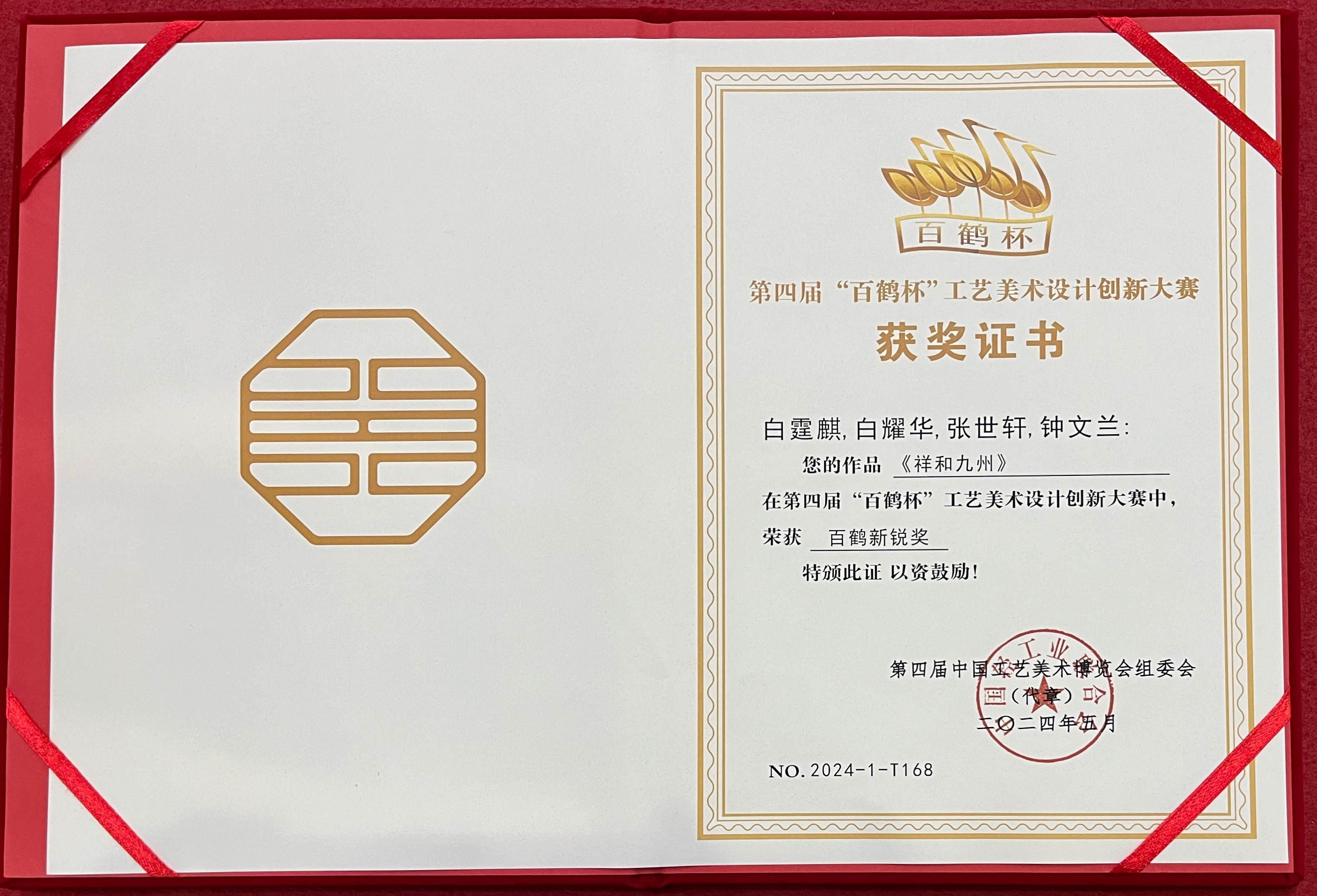 在实践指导方面,白耀华教授带领学生深入角雕创作一线,从选料、设计到雕刻,每一个环节都耐心指导,帮助学生掌握角雕技艺的精髓。他还积极参与指导青年教师,分享自己多年的创作经验与艺术理念,提升教师的教学与实践能力,助力学校打造高水平的师资队伍。在他的指导下,许多学生在各类艺术活动与比赛中崭露头角,为学校争得了荣誉,也为合浦角雕技艺的传承培养了新生力量。同时,通过与学校的合作,合浦角雕这一非遗文化在校园内得到广泛传播,丰富了校园文化内涵,促进了传统文化与现代教育的融合。此外,白耀华还获得了众多荣誉称号。201869日,他被评为“中国工艺美术大师”;20201229日,荣获“广西工匠”称号;20218月,荣获广西五一劳动奖章。2021年,他设计、白霆麒和吴兴初制作的角雕《咏春》在第56届全国工艺品交易会仿真植物及配套用品展上荣获“金凤凰”创新产品设计大赛金奖;20235月,他设计的合浦金蝠《九州同庆》荣获2023年“百花杯”评审活动银奖;20245月,作品《祥和九州》在第四届“百鹤杯”工艺美术设计创新大赛中荣获百鹤新锐奖。